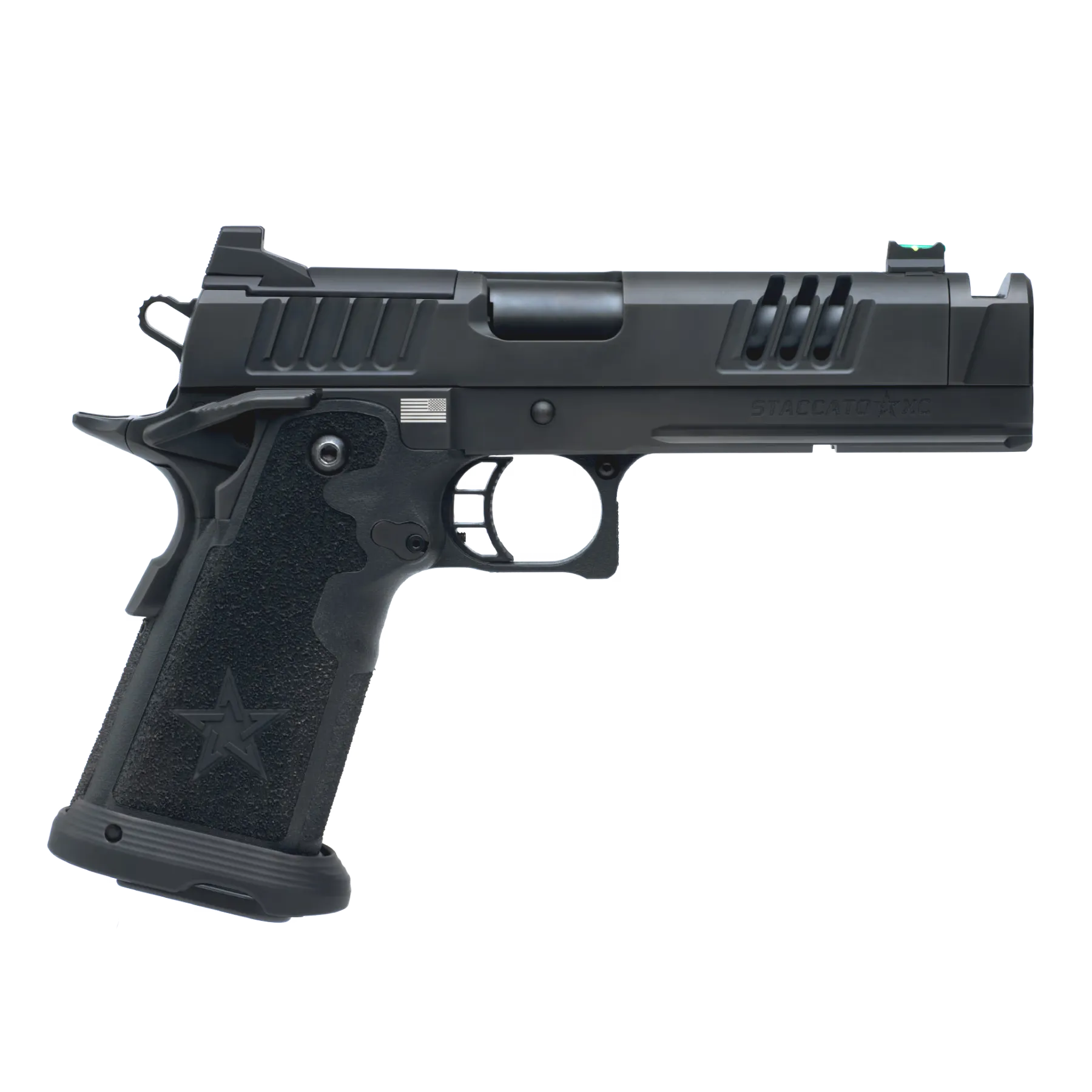 The Staccato XC is designed for competition-level performance, making it one of the flattest shooting and most accurate pistols in its class. Its 5-inch bull barrel with an integrated compensator provides excellent accuracy, especially at longer distances. Shooters report being able to consistently hit targets at 50 yards with ease.
